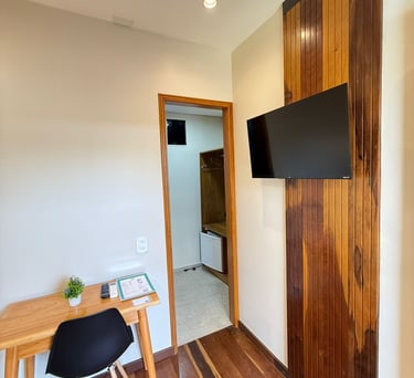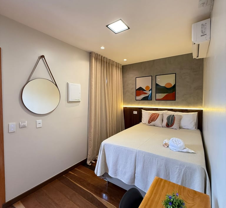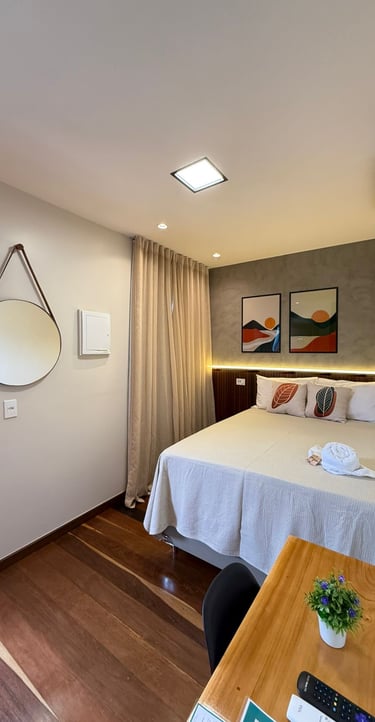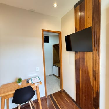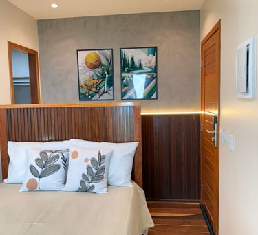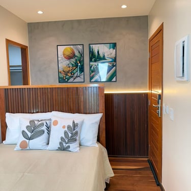 Suíte ampla, perfeita para relaxar em meio à natureza vibrante.